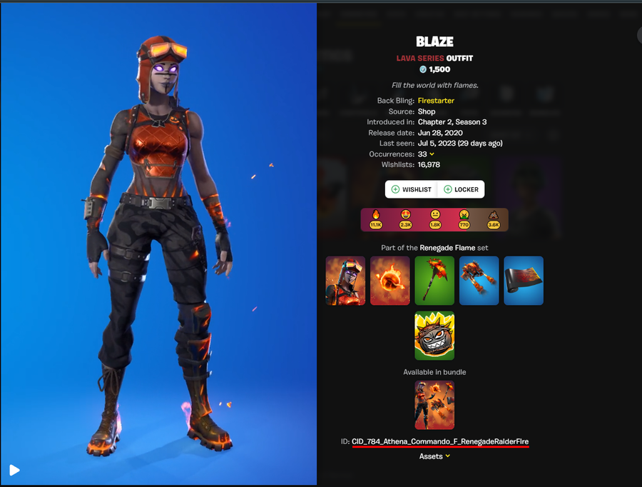 In order to find the ItemDefinition for your pickaxe, you can use a website called [Fortnite.gg](https://fortnite.gg/cosmetics?game=br\&type=pickaxe). Locate the pickaxe you are swapping to using the search bar and click on the pickaxe. In the popup at the bottom right, you will see the 'ID' which will be our ItemDefinition."